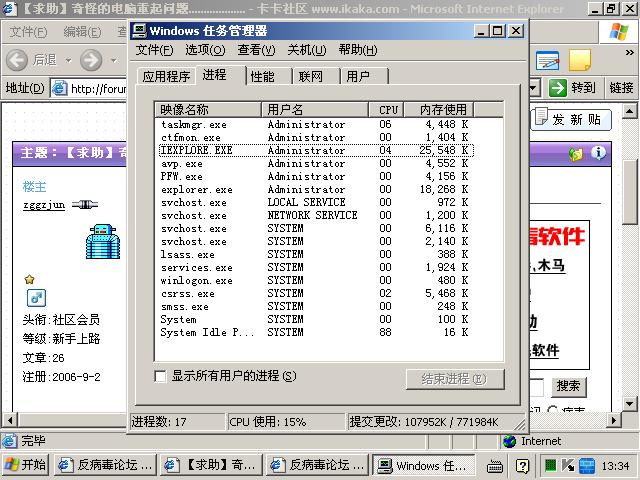 在安全模式下面用最新的卡巴和ewido杀了好多毒,再次正常模式开机又自动重起.
