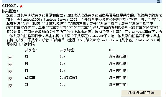 输入 net share C$ /delete 点回车 其他的 把 C$ 改成 其他的共享名 就好