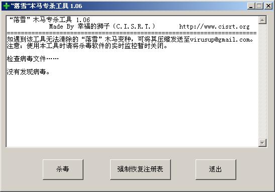 下载幸福的狮子写的落雪木马专杀,点“杀毒”后,再点“强制恢复注册表”。