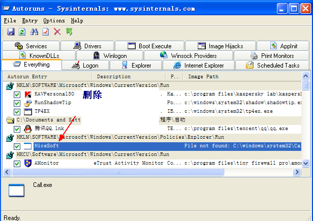 删除system32文件夹中的Call.exe和RChook.dll