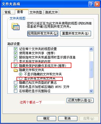 请教一个问题~为什么我选取了“文件夹选项-查看-查看所有文件和文件夹”还是看不到隐藏的文件呢??