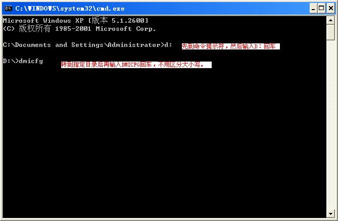 通过CMD里面,也是一打上那个程序的名字,根本就没有一点反应。比如是E: 后面打上那个名字DMICFG,一回车,还是E: