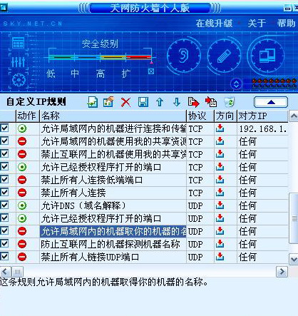 日志没问题啊,,防火墙没纪录吗?你昨天看到我发的防火墙设置图片的里片里,我有一项是的局域网是允许的,因为我有两台电脑,要进行传输,所以才设置成允许,你可以把他设置成"任何地址" 和 "拦截"啊,