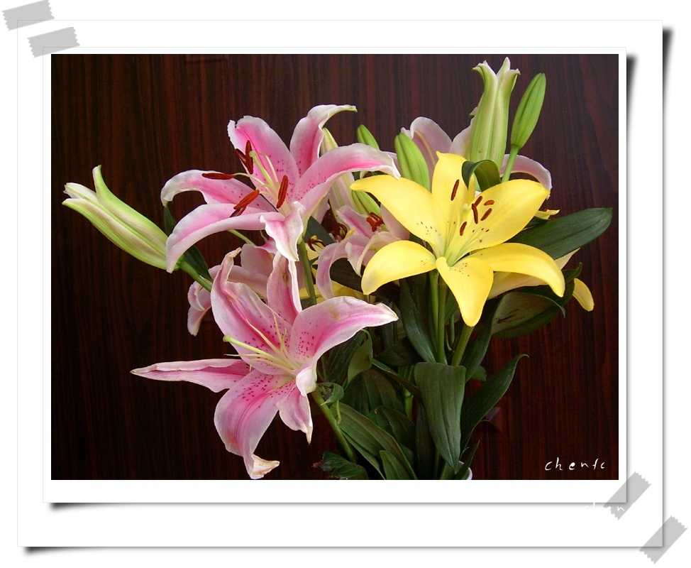 花:在温暖的天气里,花色表现为深粉红色;天气凉爽时,则表现为粉红色。花完全开展时为星形,直径15~25cm,具淡雅的芳香,花瓣数15~20。萼片正面紫红色,背面褐色,4枚。花药橙红色,雄蕊橙红色。花梗红褐色,无绒毛着生。