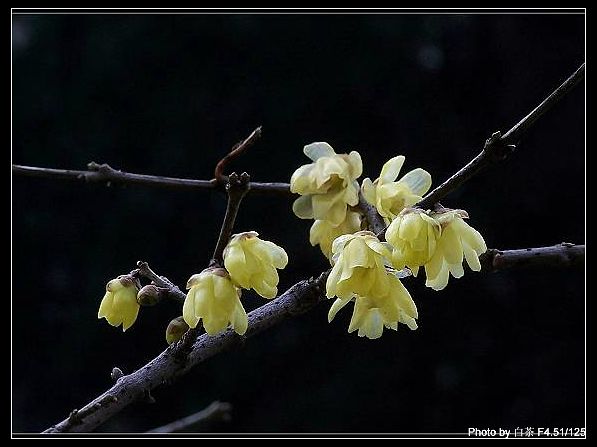 花芳香,直径约2.5厘米,外部花被片卵状椭圆形,黄色,内部的渐短,有紫色条纹;花托椭圆形,长约4厘米,口部收缩,有附属物。花期11月至翌年3月。 庭园多栽培,原产我国中部,在鄂西及秦岭地区常见野生,现各地栽培,为早春观赏树种。