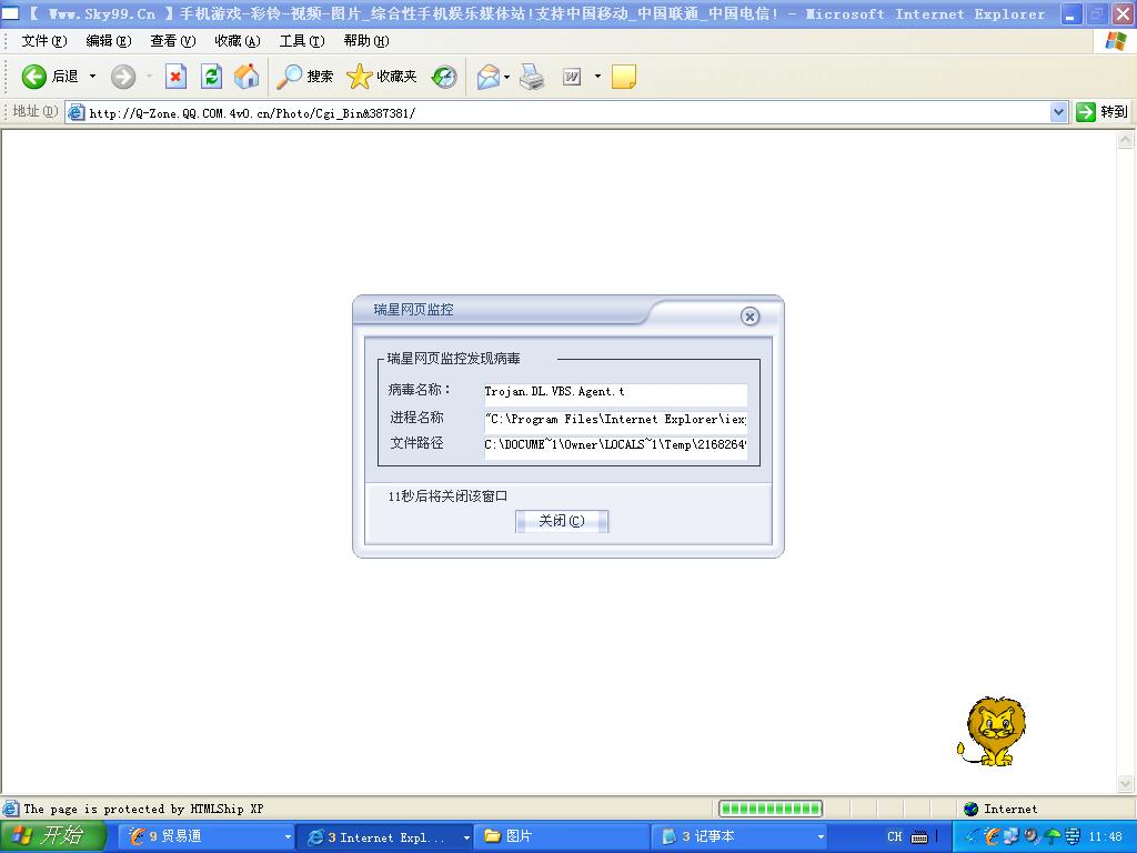 电脑不提示你怎么知道是病毒?而且你说的地址好象是QQ的.