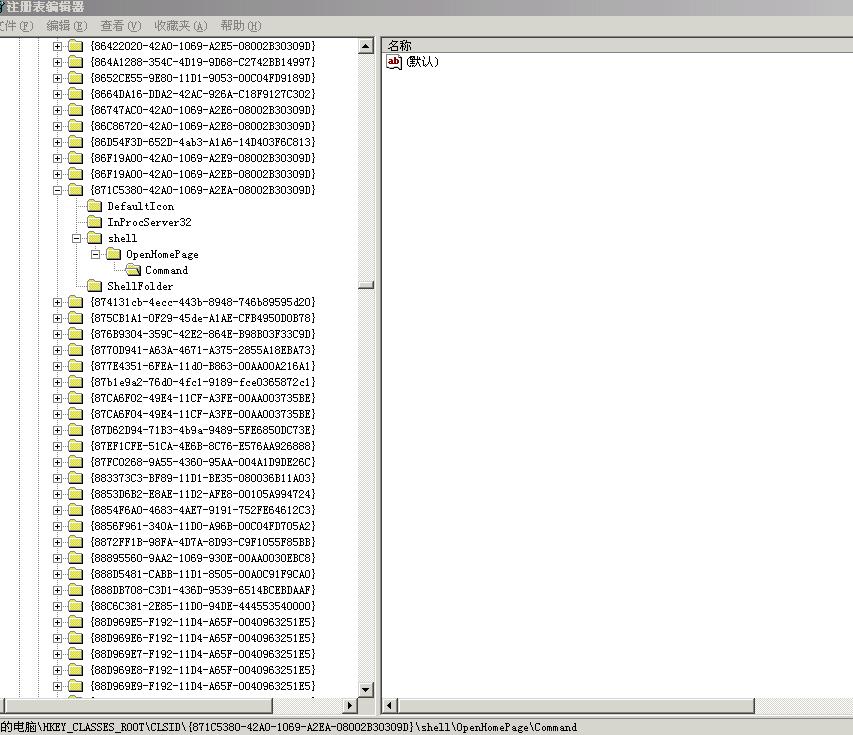 我刚才看了你发了几个帖,说图表有点怪怪的,,我想应该是中威金病毒了,,你想不要修改注册表,你先去看看你IE程序在不在,,要不然改了注册表也没用
