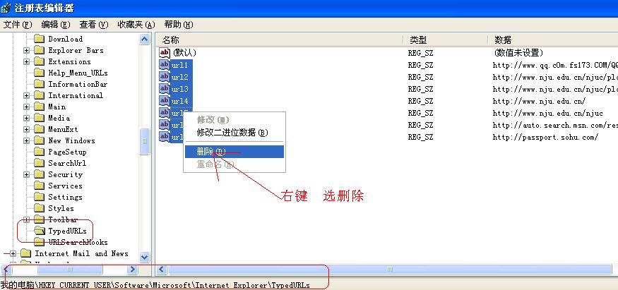 谢谢楼上各位的帮忙.楼上各位的方法我都已经试过了,5楼bettertiger和9楼侠客行难的方法只能删除英文地址,中文地址删不掉的,第8楼ADL的方法我也试过了,中文地址还是删不掉.关于第7楼所说的在注册表内删的方法,因为我是菜鸟,不知道如何操作.还是希望有高手再指点一下.