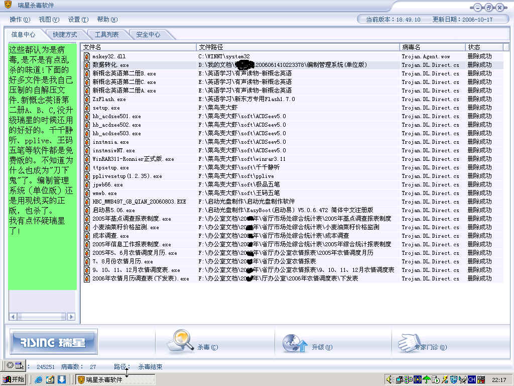 Trojan.PSW.YBOnline.ag 删除成功 手动扫描C:\System Volume Information\_restore{D2165923-2631-4BC2-BCAA-B324ACFC75BD}\RP1A0011366.exe>>junjh.exe本机