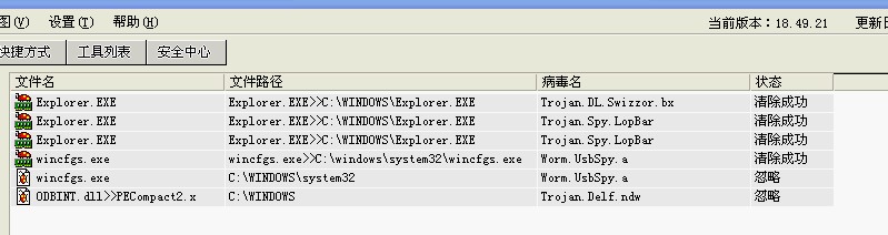 我反复杀这几个病毒反复出现,我用的是最近的瑞星了。而且还有两个和我说忽略。