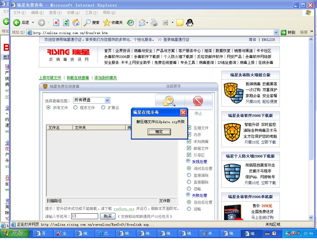 瑞星在线杀毒免费的和收费的都用不了。。
