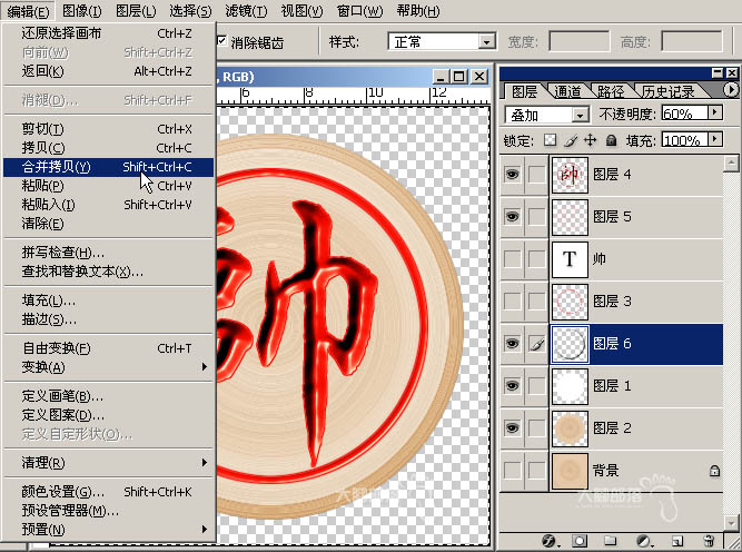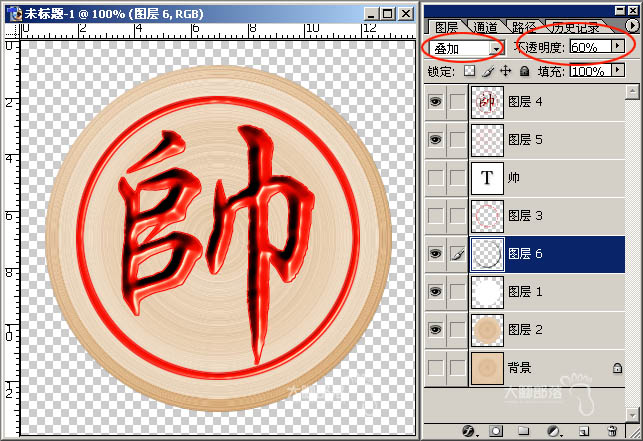 步骤三十、改变该层不透明度为60%,图层选项为叠加