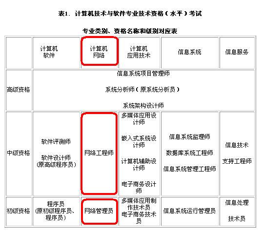 本考试分五个专业类别:计算机软件、计算机网络、计算机应用技术、信息系统和信息服务。每个专业又分三个层次:高级资格(高级工程师)、中级资格(工程师)、初级资格(助理工程师、技术员)。对每个专业、每个层次,设置了若干种资格考试(见附表)。