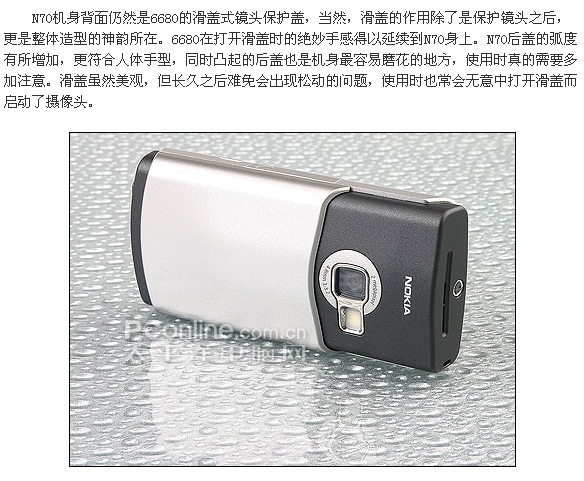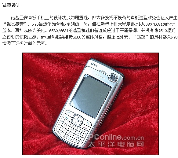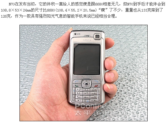 诺基亚N系列手机将丰富的功能融入设计精美、使用方便的终端,开创了新一代的移动产品系列。N系列手机主打的功能就是带给用户最高级的影音多媒体体验,这从三款产品的超高分辨率屏幕,卡尔·蔡司光学认证镜头,4GB微硬盘,VHS制式视频和WLAN等等可以看出,诺基亚第一次在此前并不拿手的手机硬件配置领域充当了领跑者的角色,一举打破了日韩手机在声色效果上的“垄断”地位。能够与诺基亚N系列相抗衡的目前看来也唯有多普达900(3G制式的PPC手机,具备VGA屏幕)和索爱最新发布的采用UIQ3.0全新标准QVGA分辨率、具有200万像素自动对焦摄像头、并支持WiFi功能的3G智能旗舰P990。在S60当世机王N90经过我们太平洋手机频道的权威详尽测试并给予极高评价之后,N系列的另一成员N70的正式零售版也终于正式登陆评测室。号称全球最小基于S60平台3G手机的N70究竟有着如何惊人的表现呢?