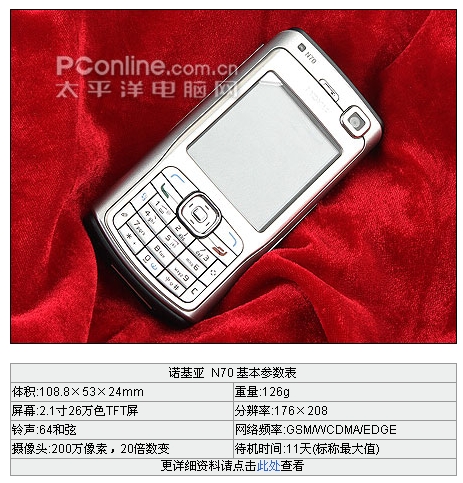 诺基亚N系列手机将丰富的功能融入设计精美、使用方便的终端,开创了新一代的移动产品系列。N系列手机主打的功能就是带给用户最高级的影音多媒体体验,这从三款产品的超高分辨率屏幕,卡尔·蔡司光学认证镜头,4GB微硬盘,VHS制式视频和WLAN等等可以看出,诺基亚第一次在此前并不拿手的手机硬件配置领域充当了领跑者的角色,一举打破了日韩手机在声色效果上的“垄断”地位。能够与诺基亚N系列相抗衡的目前看来也唯有多普达900(3G制式的PPC手机,具备VGA屏幕)和索爱最新发布的采用UIQ3.0全新标准QVGA分辨率、具有200万像素自动对焦摄像头、并支持WiFi功能的3G智能旗舰P990。在S60当世机王N90经过我们太平洋手机频道的权威详尽测试并给予极高评价之后,N系列的另一成员N70的正式零售版也终于正式登陆评测室。号称全球最小基于S60平台3G手机的N70究竟有着如何惊人的表现呢?