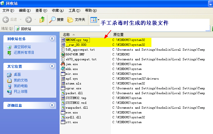 C:\Documents and Settings\baohelin\Local Settings\Temp\winrar.sys(感染完成后自动删除)
