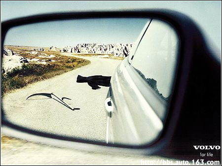 沃尔沃广告,宣传点在于“为了安全,为了生命”,所以汽车压死了死神,同时也就意味着保卫了人们的安全。
