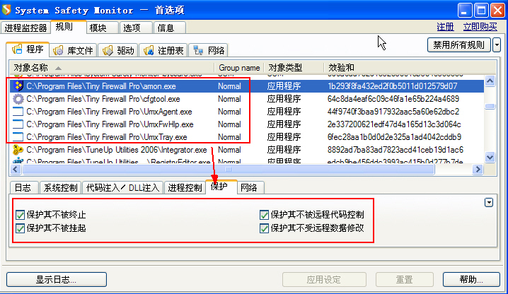 如果要用来辅助杀毒,要观察全部过程的话,保护基本默认,只留监控。如果要实际保护系统安全,那规则当然才是要设的。