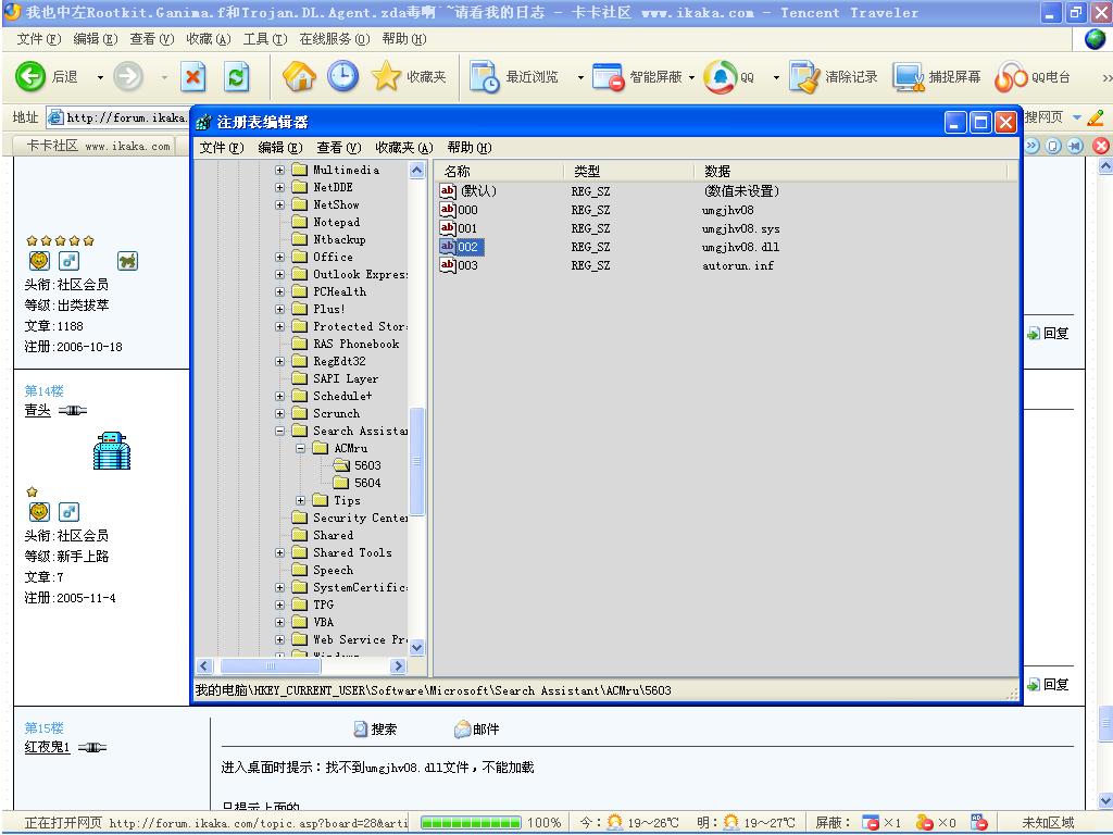 我也中左Rootkit.Ganima.f和Trojan.DL.Agent.zda毒啊`~请看我的日志