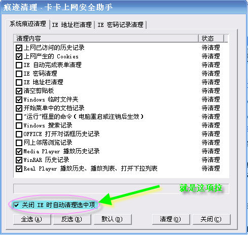 更新到3.0后,没了以前'关闭IE时自动清除选定痕迹'的设置了,每回都要手动,非常不方便,望瑞星能重新添加这项功能ING~~~