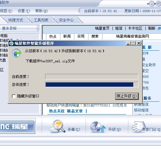 以前我也出现过这种情况,是从高版本升级到了低版本了。同你的原因是一样的。我认为是瑞星公司升级高版本后,出现什么BUG,而后又还原到低版本。这只是暂时的,而后,过两天我又升级了,当然是升级到最新版了。没有什么不对的。