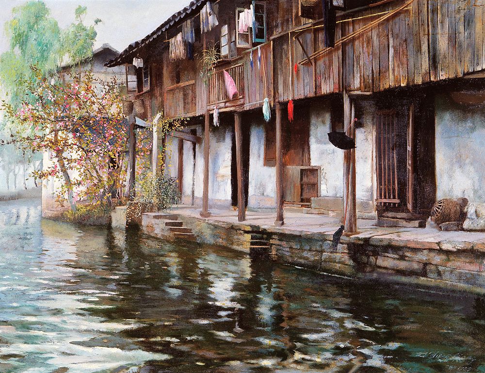 廖炯模 1996年 岸边人家