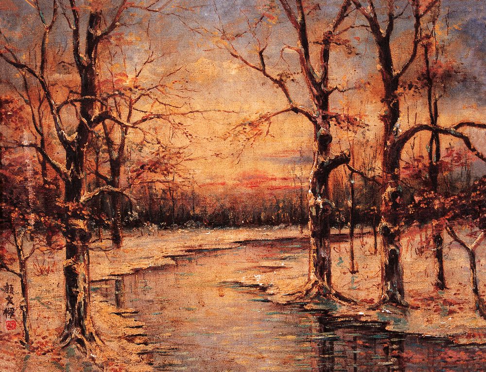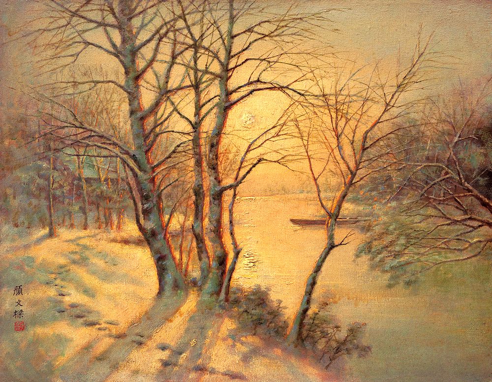颜文樑 约40年代 夕阳雪景