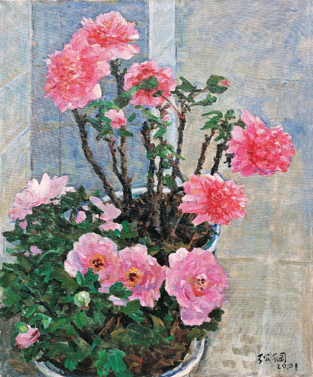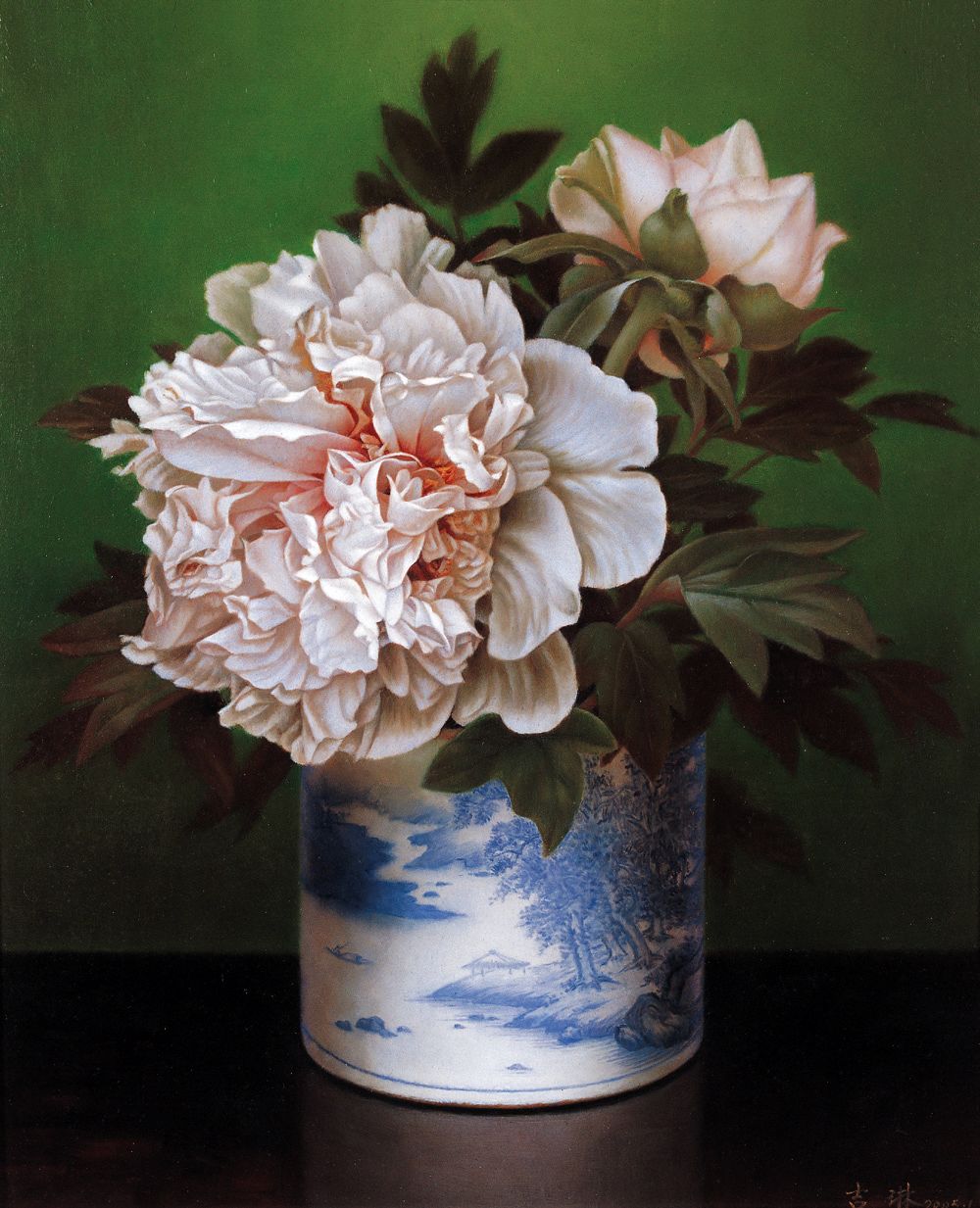 吉琳 2005年作 笔筒牡丹
