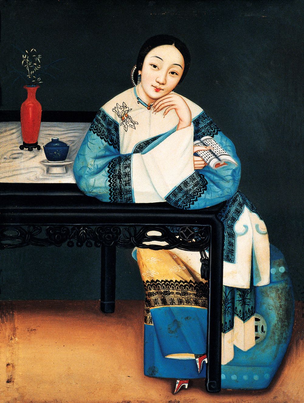 佚名 晚清 《执扇仕女》