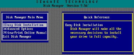 启动DM,进入DM的目录直接输入“dm”即可进入DM,开始一个说明窗口,按任意键进入主画面。DM提供了一个自动分区的功能,完全不用人工干预全部由软件自行完成,选择主菜单中的“(E)asy Disk Instalation”即可完成分区工作。虽然方便,但是这样就不能按照你的意愿进行分区,因此一般情况下不推荐你使用。