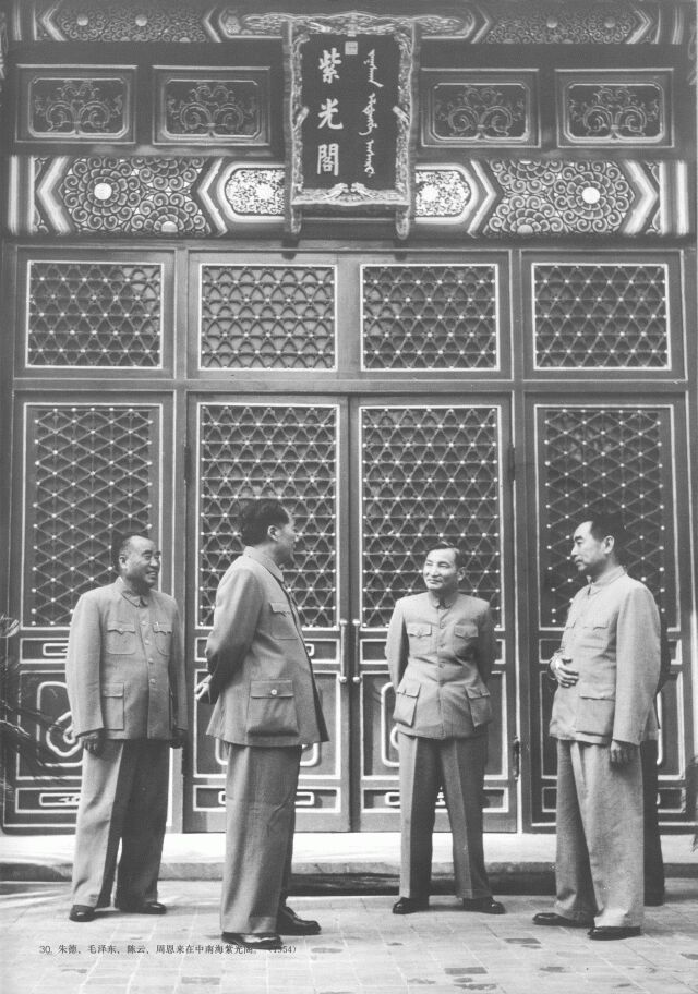 1954年,朱德、毛**、陈云、周恩来在中南海紫光阁。