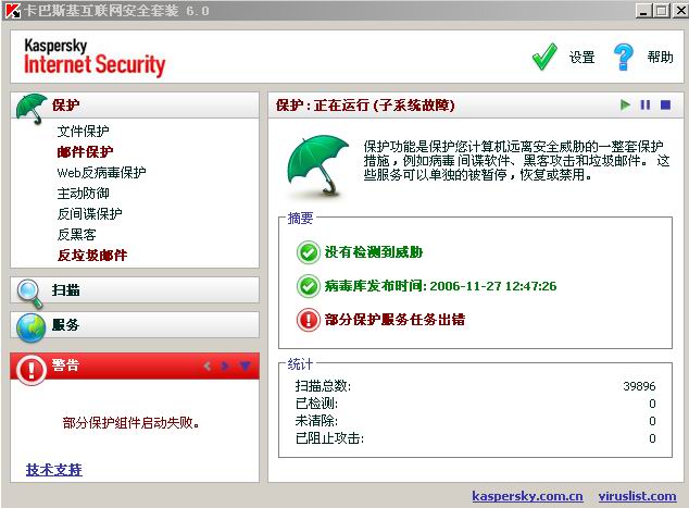 不知道为什么,我今天下载的卡巴6.0网络版的,还有些保护任务失败.不知道怎么回事....保护