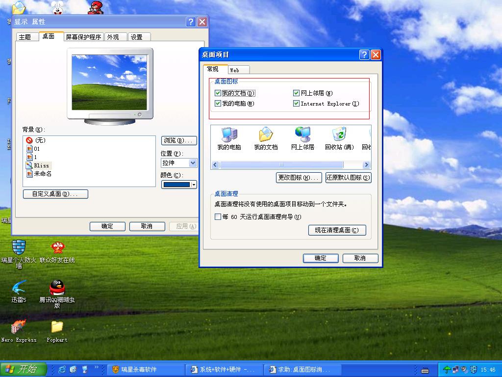 按下列步骤:桌面--属性--桌面--自定义,出现下图,选择后就可以了.