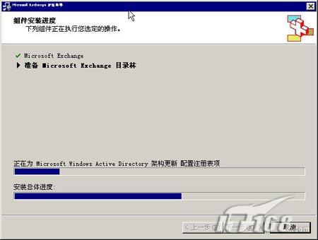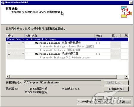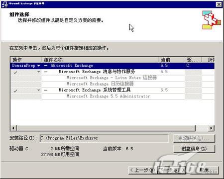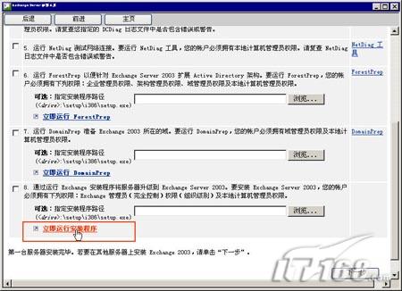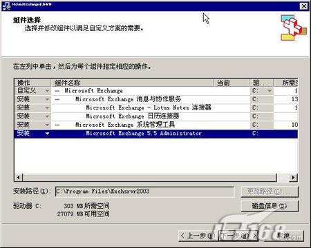 最后我们进行安装Exchange服务器组件的最后一步即安装Exchange服务组件,我们首先用在森林拓展的时候指定的管理帐号登陆,然后在安装向导中运行立即运行安装程序,会打开Exchange安装向导,根据实际请选选择相应的组件,其中Exchange消息与协作服务是Exchange的核心组件,Lotus Notes连接器主要用于与Notes服务器的共存或迁移。日历连接器用户同步Notes服务器上的日历信息。Exchange系统管理工具用户管理Exchange server 2003。Exchange 5.5 Administrator用户管理Exchange5.5服务器。