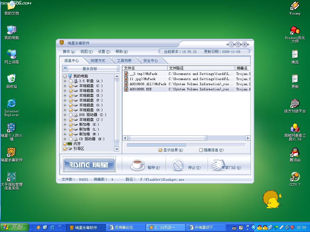 我就是不想重装杀毒,我怕卸载了,病毒马上就发作了,怕怕!只是想确认一下2003年买的瑞星的现在还能升级么?我重装了可能还是一样的,如果是病毒的话。已经是最新版的了,现在正在杀毒,,,,,