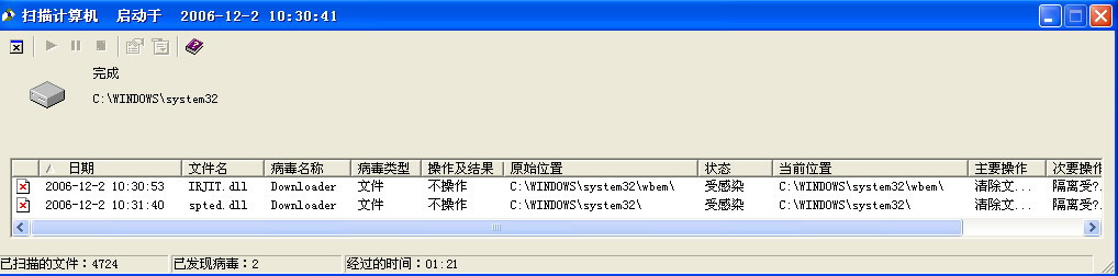 1.重新启动计算机,按F8,进入安全模式,查找并删除文件“c:\windows\system32\spted.dll  ”、“ c:\windows\system32\wbem\IRJIT.dll ”