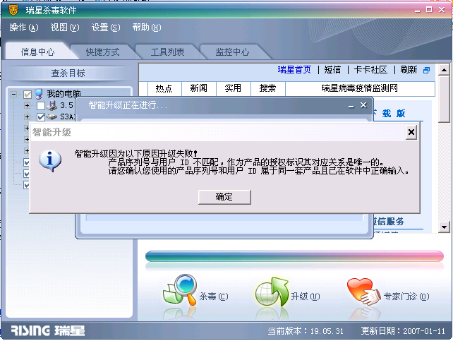 360卫士、新毒霸破坏瑞星杀毒导致升级失败(升级提示XXXXXXX 800006)的解决办法