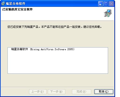结果到添加/删除面版中删除不了,提示"已经安装瑞星2005,无法在安装同类软件,请先卸载后在安装",我用其他软件进行卸载也不行,具体见图,请问各位高手,这是怎么回事啊?