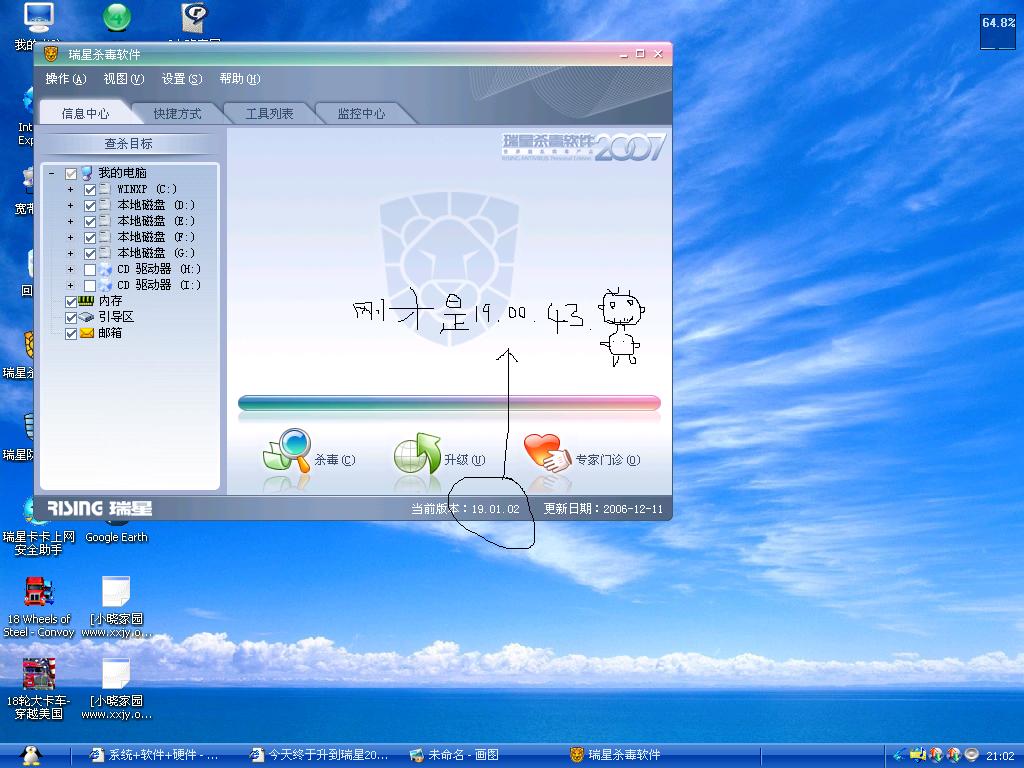 哎呀!你的瑞星防火墙都升级到2007了,我的还没有升级呀!