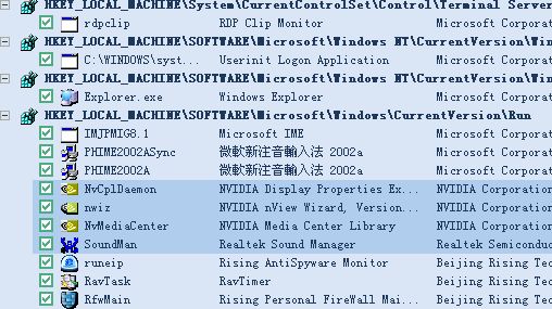 很正常啊从下往上是 瑞星防火墙、瑞星杀毒控制、IE防漏、声卡应用程序、三个都是NV显卡的程序、上面的就不用说了吧