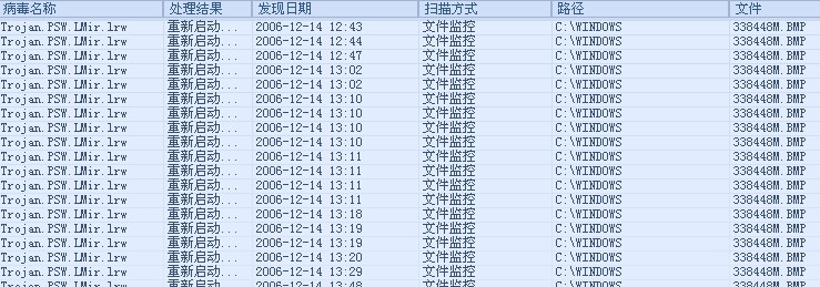 【求助】文件名338448M.BMP病毒名Trojan.PSW.LMir.lrw这个老是杀不掉啊?