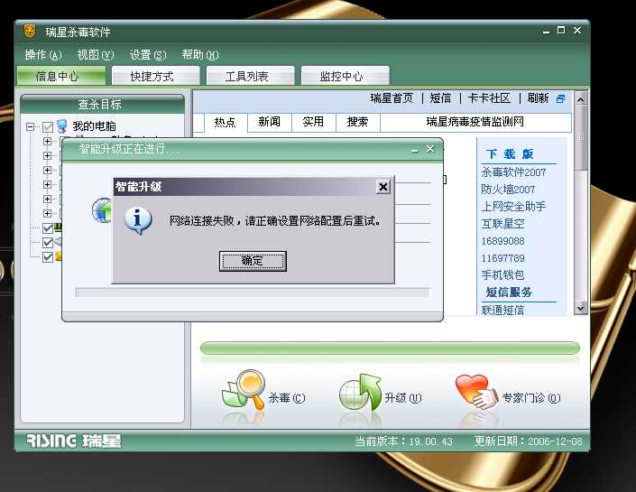 12月8日升级到2007后,防火墙每天可以正常升级,但是杀毒软件的情况如下