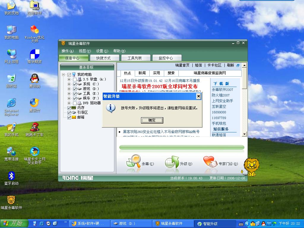 打开瑞星,网络设置改成通过局域网或直接访问网络