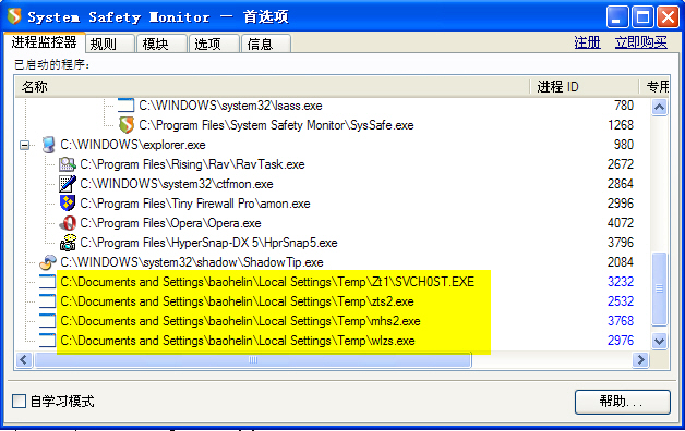 而且会在进程中运行,导致瑞星杀毒软件无法运行,造成本机彻底掉线现象。我的临时解决办法是在C:\W