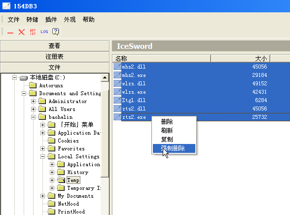 2、用IceSword强制删除这些文件: