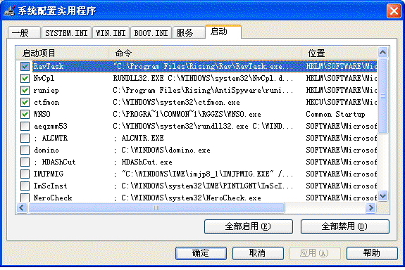 所有的启动项目(包括注册表、启动文件夹、服务等)
