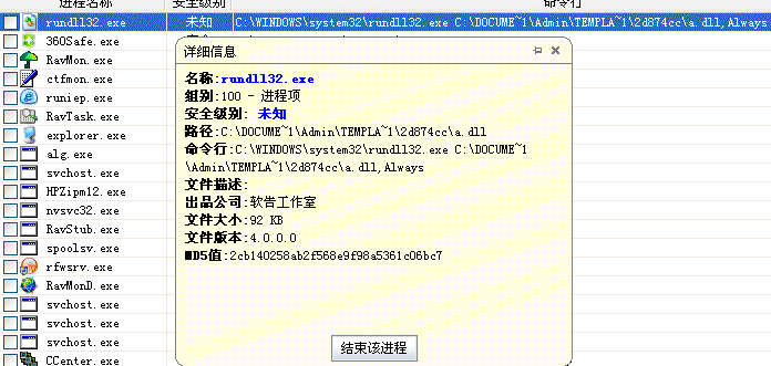 [C:\DOCUME~1\Admin\TEMPLA~1\2d874cc\a.dll]  [软告工作室, 4, 0, 0, 0]
