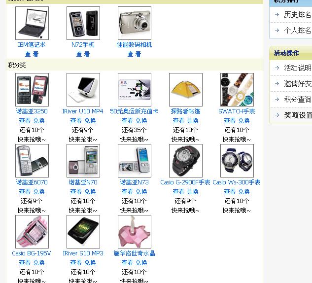 免费注册成为飞信用户,下载体验Fetion PC客户端带来的无限乐趣,就可以凭飞信号参与飞信积分活动。飞信用户通过登录飞信PC客户端和推荐好友使用,就可以累积积分,并选择兑换相应的奖品(包括IBM笔记本电脑,NOKIA N73手机,卡西欧手表,MP3,佳能相机,移动充值卡等等。。。好多)。