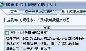 我是从卡卡3.0开始用,至今已是3.1.0.8版了,但是“实用网址导航(酷站导航)”总是挥之不去,天天都有,怎样才可以彻底清除?而且IE首页也常被篡改为“www.7255.com”,卡卡能象雅虎助手那样有“保护IE首页”功能吗?
