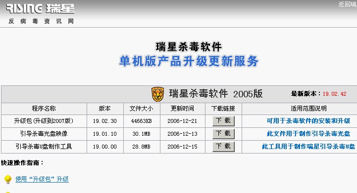 我差不多2年前买的05版中间升到过06版现在已经升级到07版了,LZ的02版我想是太老了....不过我觉得瑞星应该推出升级版来照顾老用户啊!虽然你们做得已经比国外品牌厚道